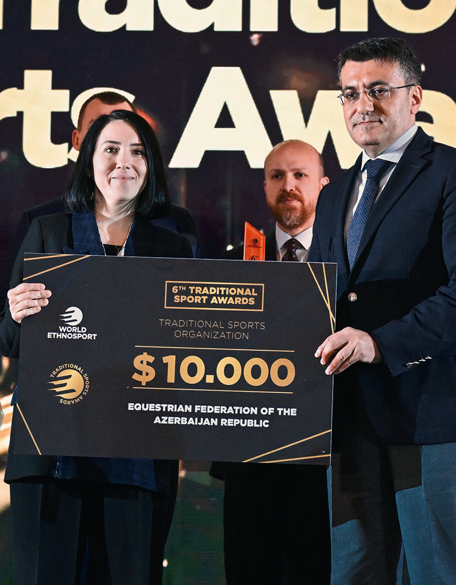 The award was presented to the Equestrian Federation of the Azerbaijan Republic by WEU Board Member Zeynep Safiye Baki Nalcıoğlu.